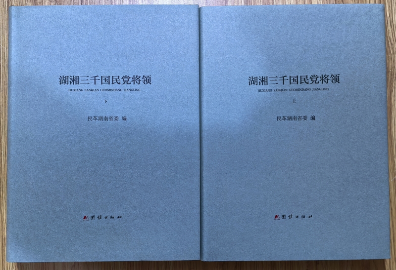 长沙市企事业文联秘书长马天志向抗日战争图书馆赠送《湖湘三千国民党将领》(上下册)。
