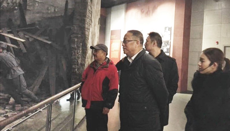 ▲湖南炎德文化实业有限公司董事长何誉军(左一)陪同十四届全国人大常委会副委员长,民革中央主席郑建邦(左二)参观湖南抗战纪念馆。
