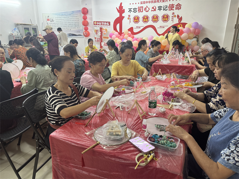 活动内容包括手工自制月饼、自制干花扇面等。活动现场气氛热烈,到场居民们纷纷表示,这次活动意义非凡,在这大家共同度过了一个温馨、难忘的中秋佳节,也深刻地感受到了社区大家庭的温暖。