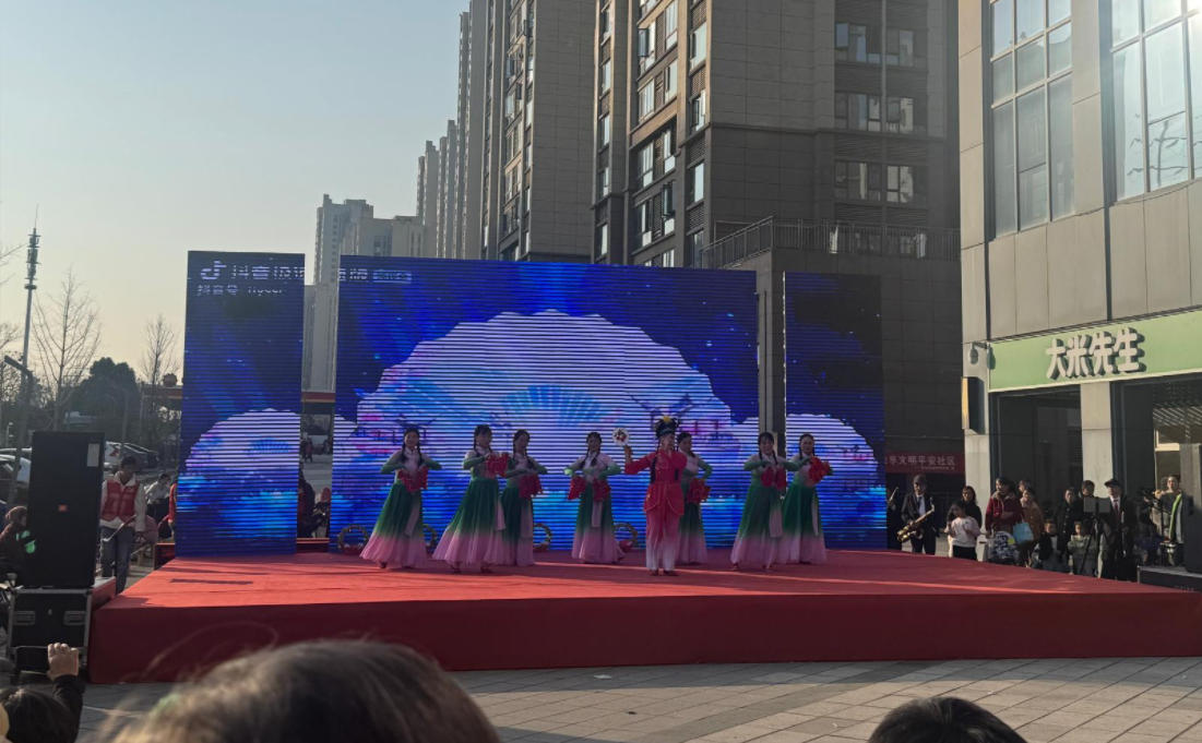 文艺汇演现场,19个涵盖舞蹈、歌曲、武术等多种形式的节目轮番上演。萌娃开场舞活泼灵动,交谊舞、柔力球表演展现积极风貌,大合唱《我的祖国》引发全场共鸣,生动彰显了社区居民热爱生活的精神风采。