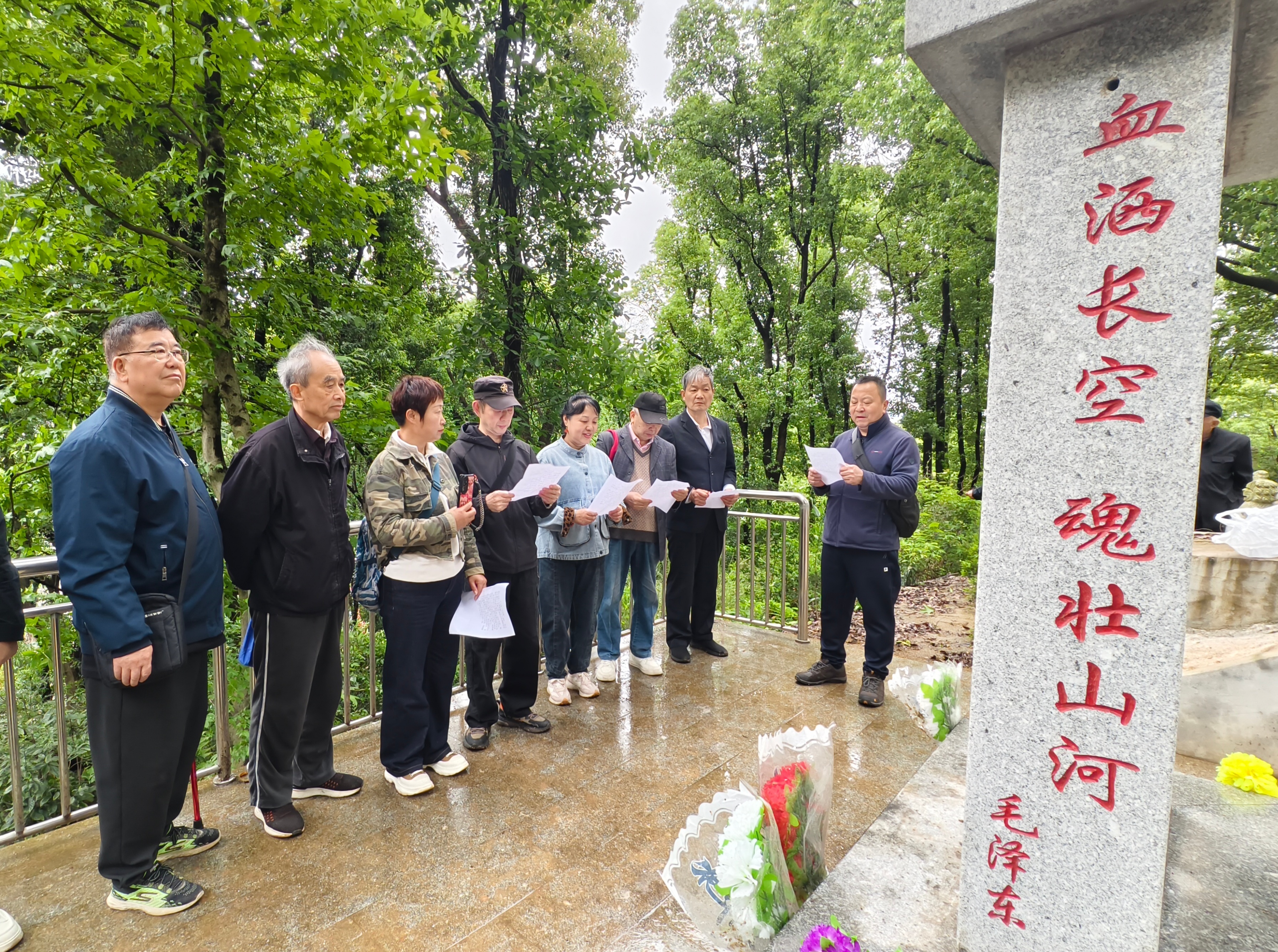 4月29日,左家垅社区代表、长沙市黄埔后裔联谊会雨花区分会会长苏孝长、长沙市黄埔后裔联谊会代表田园、长沙法官文联主席胡军军、原广州军区第三局干部吴志强、中国外运湖南公司江委清,以及抗日战争纪念网、长沙市抗战文化研究会代表、长沙市山河智能爱兵班志愿者一行十余人,前往岳麓区虎行山,共同祭拜抗日航空英烈陈怀民。