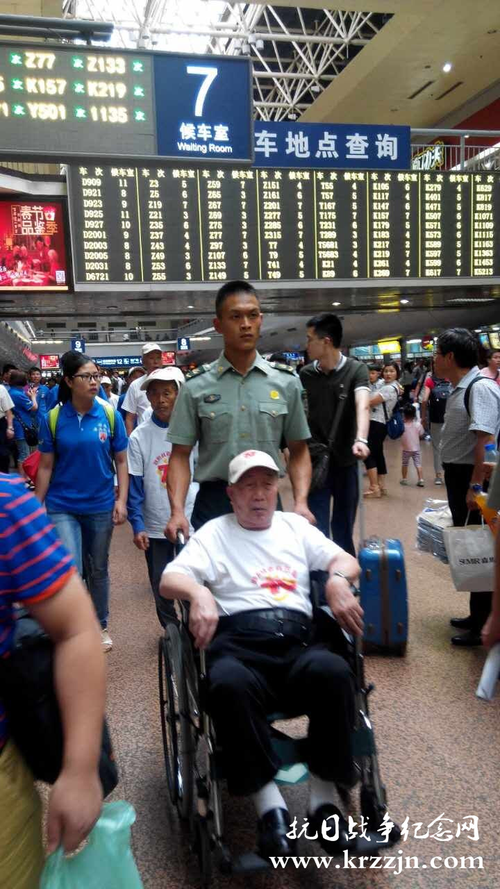 武警官兵接待抵达北京的湖南11名抗战老兵