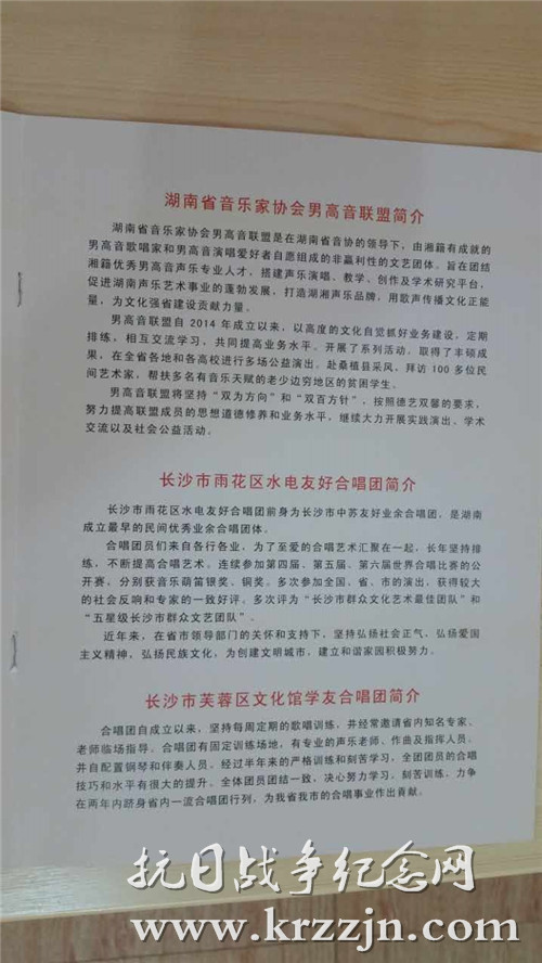 8月30日下午,为纪念抗日战争胜利70周年,长沙市黄埔军校同学会、湖南省合唱联盟、抗日战争纪念网、湖南知青网和长沙市黄埔后裔联谊会组织举办的“勿忘国耻 圆梦中华--1945——2015纪念抗日战争胜利70周年群众合唱音乐会”在长沙市群众艺术馆举行。
