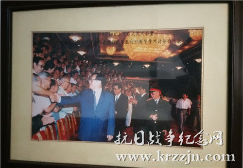 原主席江泽民在人民大会堂接见中国抗战胜利50周年学术讨论会代表,湖南抗战研究专家 萧栋梁在其中