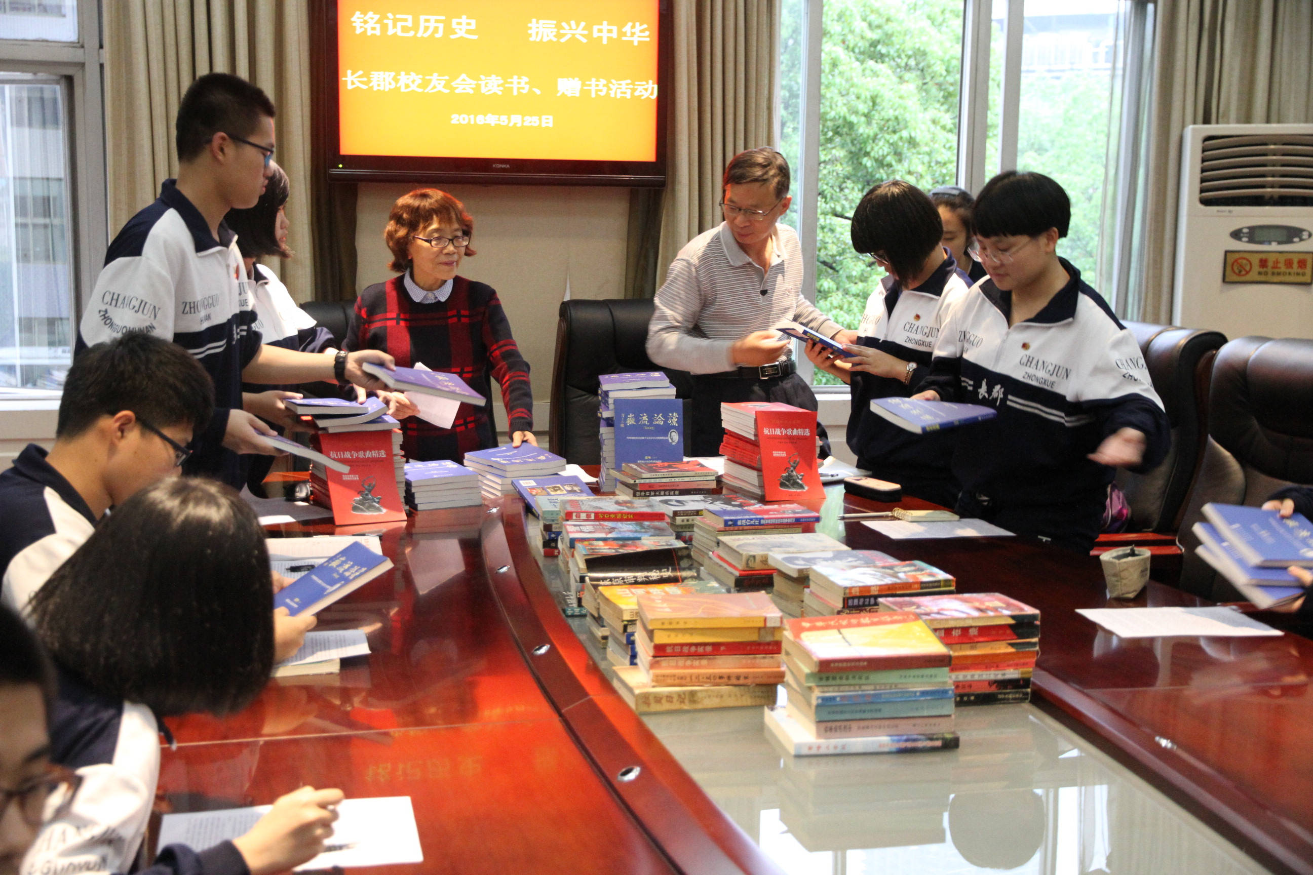 图为长沙抗战文化研究会、抗日战争纪念网向长郡中学所捐部分图书