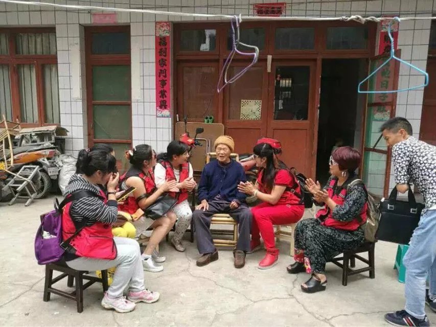 (每一次关爱抗战老兵志愿者的慰问都会让老人笑逐颜开)