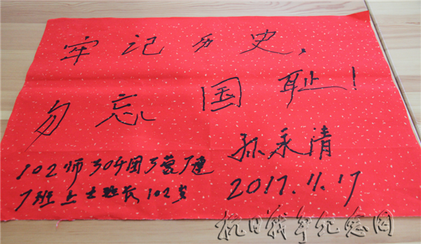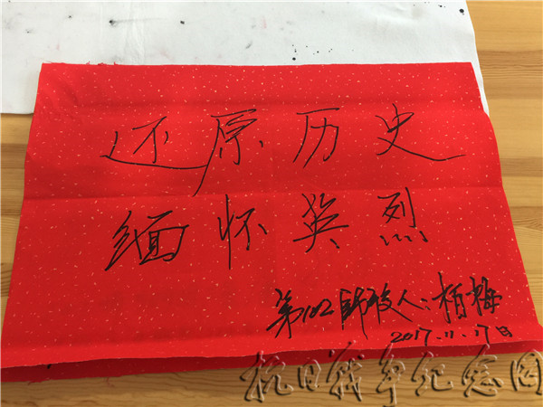 原国民革命军第102师师长柏辉章将军孙女柏梅女士为抗日战争纪念网题词