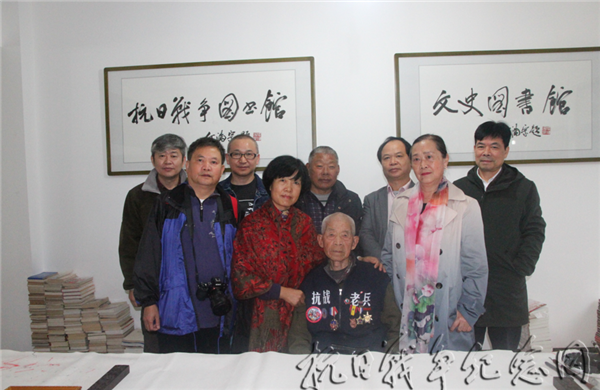 原国民革命军第102师304团3营营长顾维汉后人顾泽仁先生(前排左一)、原国民革命军第102师师长柏辉章将军孙女柏梅女士(前排左二)、河南籍百岁抗战老兵孙永清(前排左三)、原国民革命军第102师306团3营营长刘正材后人刘晓美女士(前排左四)、炎德文化实业有限公司顾问高阳平先生(后排右一)、孙老侄儿(后排左三)