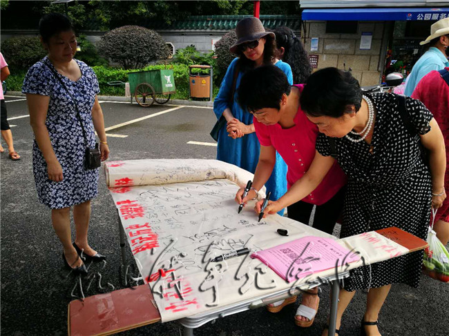 长沙市民以及外地游客在《敦促日本政府向中国人民真诚道歉万人签名》签名布上签名