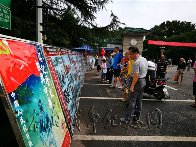 长沙市民以及外地游客驻足仔细观看抗战图片