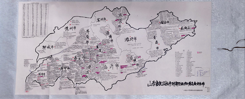 活动后期,由山东大学(威海)2017届视觉传达设计系高京京组织,与李嘉蕊、韩磊、徐暖阳、付裕、温婷茹携手进行《山东省十一所城市百姓伤亡信息数据地图》的绘制。地图共包含有效数据约550份,数据均来源于山东省信息档案馆馆藏信息及实地调研采集信息,且经绘制人员整理、校对。绘制地图工作历时二百余小时。