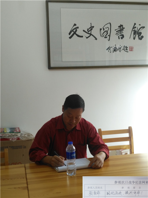 张良华为抗日战争图书馆留言:“铭记历史,振兴中华!”