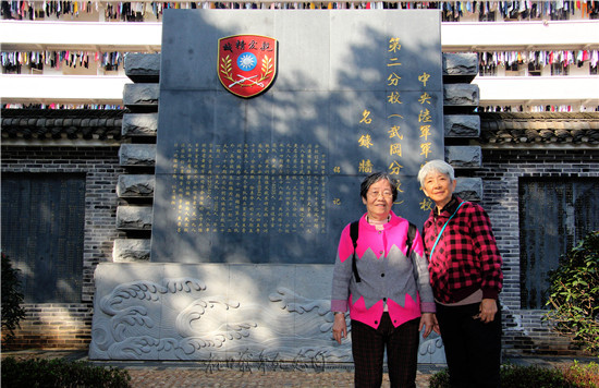 杜琼玛和陈载雅在黄埔二分校名录墙前留影