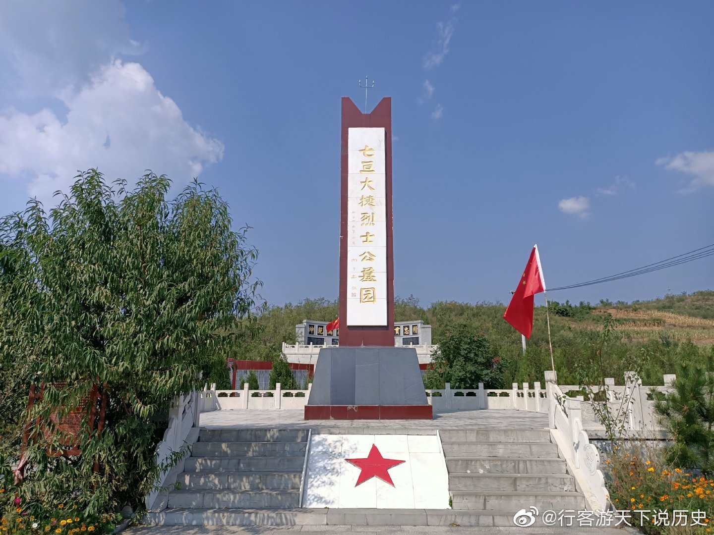“七亘大捷纪念碑”隔沟对面不远,分别是“”七亘烈士陵园”和“”七亘主战场遗址”。