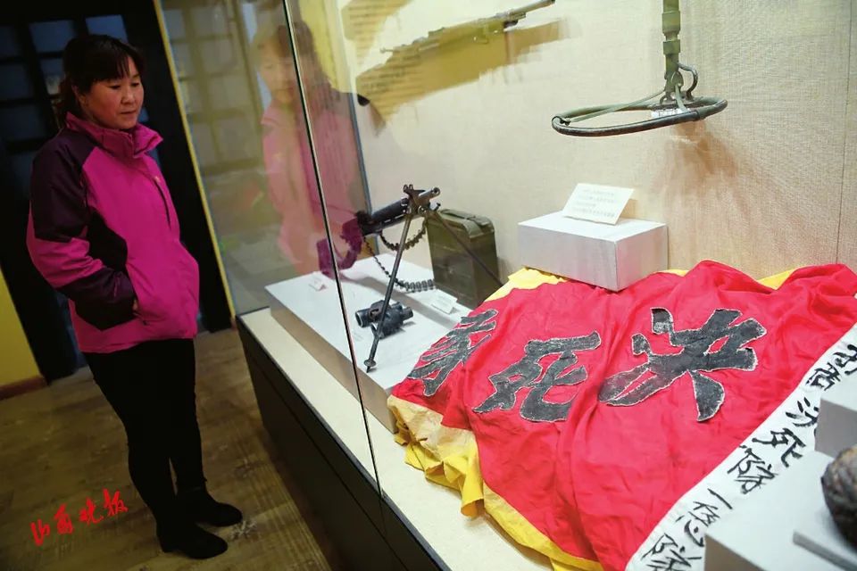 阳光正好,纪念馆里时有参观缅怀的游客出入。旧时的办公楼前,鲜红的党旗、红底黄字的“入党誓词”格外醒目。山西晚报记者不禁停下脚步,立正站好,一字一句重温入党誓词。