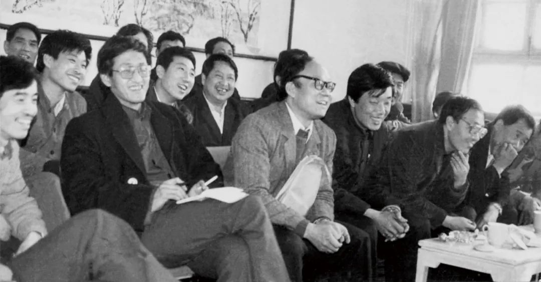 1961年11月,赵树理(左一)与青年作家谈文学创作,右起依次为焦祖尧、韩文洲、义夫。