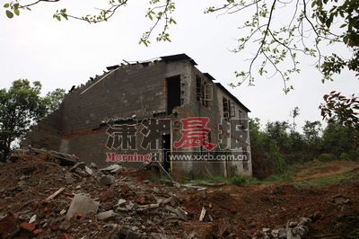 长沙河西,桐梓坡西路的尽头,这栋拆了一半的房子孤立在已经铲成平地的野猫坡上,被巨型吊车、新起的楼盘包围。