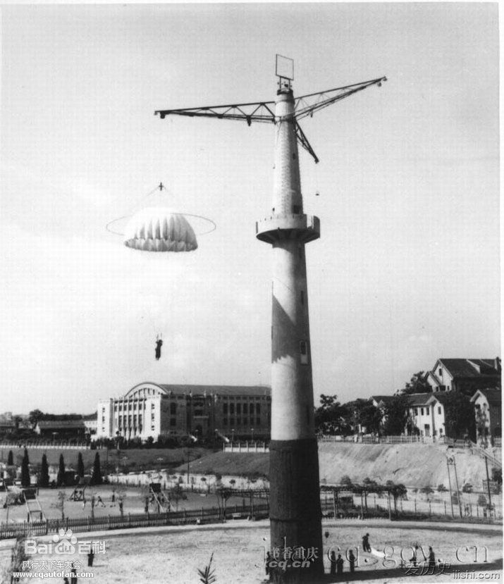 重庆跳伞塔建于1942年,号称国内首座跳伞塔,是当时远东地区最高、设备最好的跳伞塔,其主要功能是为抗战培训飞行员。2000年被列为市级文物保护单位。