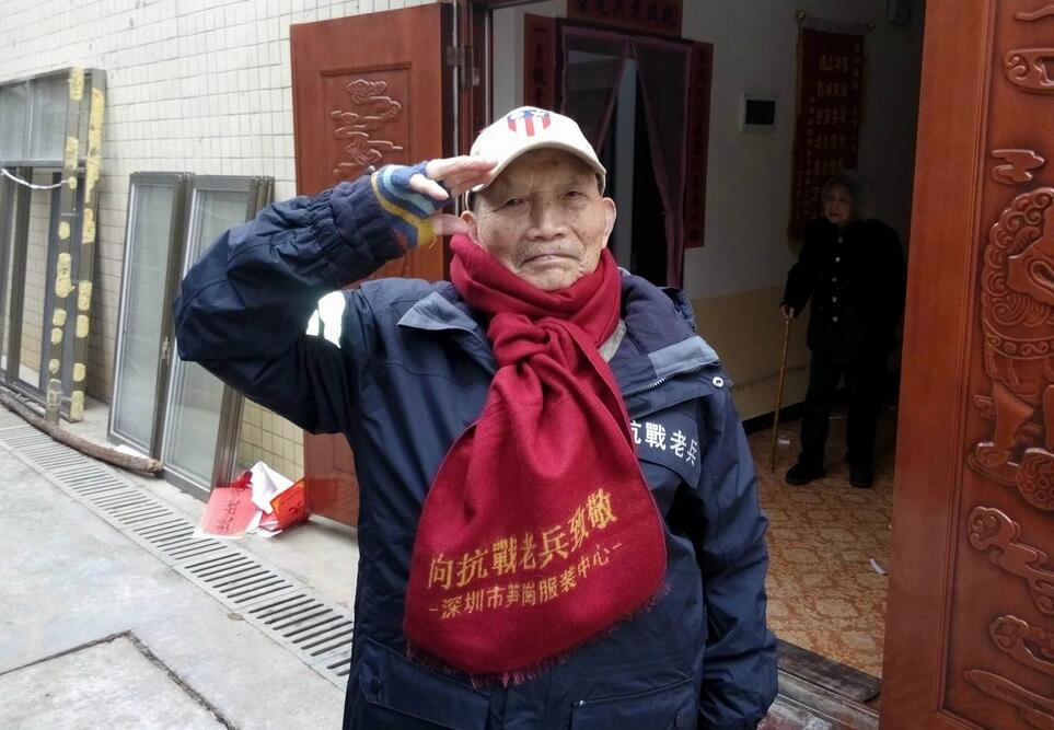 王老与老伴住在拆迁安置小区的小房间里,老伴傅奶奶是与王老相伴三十年的续弦妻子。王老的原配夫人在“文革”中不甘受辱愤而自杀,王老也被下放劳动,但他以坚强的意志和乐观的心态度过了最黑暗的年代,艰苦磨难反而使他筋骨更加健壮。拨乱反正以后王老焕发青春又工作了十多年,成为行业先进工作者,并与文采出众的傅奶奶再结良缘。近百岁的王老常打拳做操抖空竹,走三五里路不喘气。外出不坐出租坐公交,两位老人经常被请去做推销讲座的嘉宾,王老告诉我,其实他从来没有吃过那些保健品。商家送的水果、饮料、食品常常用来招待了我们。但两老毕竟年事已高,视力听力都有问题,儿女也都做了爷爷奶奶,不能每天侍奉,生活有困难。他家经常发生断电、断电视、断电话的现象,志愿者九九仔细一查,发现是老鼠闯的祸,就连床上被子里也有不少老鼠屎。动员过一些学生志愿者上门服务,但学生要放寒暑假,尤其是傅奶奶摔跤后,擦地都只能坐在小板凳上慢慢挪着擦。我们商议着把两老送到养老机构,正好安华山庄的刘总想要邀请抗战老兵入住,王老符合百岁免费的条件,于是在2013年百岁生日过后,由郑鹏和肖老师首先联系,我们组织志愿者和车辆把老两口高高兴兴送到安华山庄,成为第一位正式入住的抗战老兵。还差一个月就整整三年,王老在安华山庄度过了壮美的晚年。十多位老兵相继入住,王老成为受人尊敬的大哥哥和主心骨,民政部、财政部等中央部门相继慰问,挂牌“抗战老兵照护中心”,省市统战部、政协领导李薇薇、刘晓、文树勋等都来造访,志愿者和学生的活动更是络绎不绝,王老是当仁不让的老兵代表,他也在2014年被评为长沙市健康长寿老人。