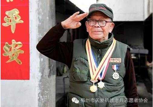 97岁住在梅县隆文镇檀江村,原预6师17团6连轻机枪手, 21岁时抽丁入伍,刚开始是步兵,背八斤铁,因为打仗很勇敢,被连长挑去当轻机枪手,驻守潮汕地区,在澄海、潮阳、合山一带与日军隔4、5公里对峙,日军常常在凌晨骚扰。打仗时机枪手每打完1~2排子弹(每排25发子弹)后就要迅速换地方,至少要撤离1到2百米远,不然很容易被鬼子的炮弹打中。后调入广东保安团,26岁时因生病请假回家。