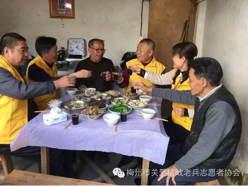 3月阳春伊始,梅州市关爱抗战老兵志愿者协会志愿者一行13人,在名誉会长李建华先生的带领下前往隆文、蕉岭两地看望:李文礼、冯进贤、李国汉、汤明江四位抗战老兵爷爷,送去了协会的致敬金和叶剑英基金会的关爱金,及部分水果和礼品 。