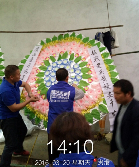 3月20日,关爱抗战老兵志愿者和抗战老兵黄祯安的亲属,亲戚朋友,邻里们一起为黄祯安老兵归队送行,老兵归队,抗战精神永存。