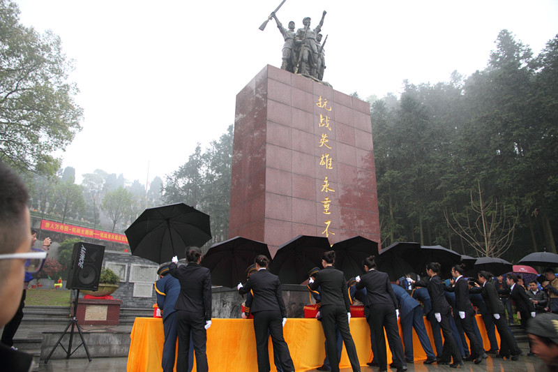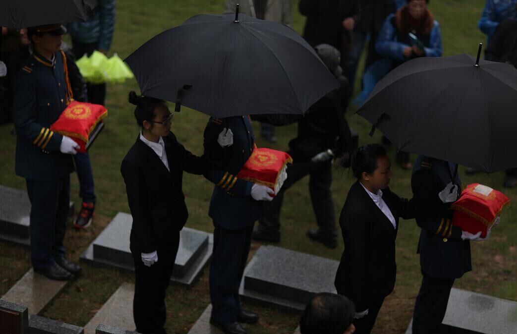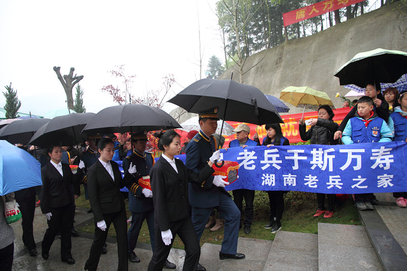 2016年3月30日上午,天幕低垂,细雨霏霏,湖南长沙唐人万寿园一片肃穆之情,16位抗战老兵集体安葬仪式在此举行。全国政协委员、民革中央顾问、黄埔军校同学会会长林上元,全国政协常委、民革中央副主席、郑洞国将军长孙郑建邦,民革中央常委、湖南省政协副主席刘晓等有关领导、群众及亲属代表鞥冒雨为老兵送行。