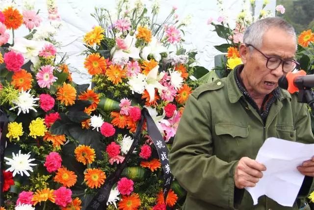 五十一年如一日,守护74军抗战英烈墓碑的刘金国老人作了含泪发言,讲述他五十一年的不悔选择,那就是用生命守护74军的英烈墓碑。