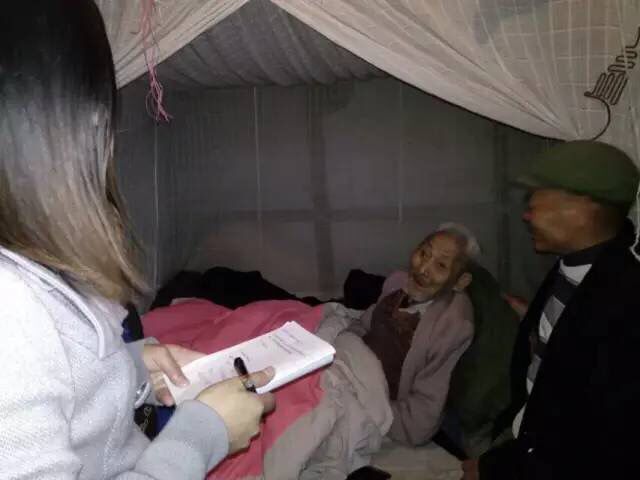 3月29日,我和同为关爱抗战老兵川军团志愿者的兰勇前往岳池看望慰问抗战老兵尹修远。 到爷爷家时,我们看到一张非常破旧的床和铺满灰尘的床罩,爷爷身体卷缩的躺在床上,已经卧床快1个月了,看到爷爷精神有点差,我们的眼泪在眼中打转……。爷爷的儿子在爷爷耳边说我们来了,爷爷对我们笑了笑,让爷爷儿子给我们拿牛奶。因为是初访爷爷,很多资料需要爷爷回忆,和爷爷交流了几分钟,爷爷想做起来,因爷爷无法自己坐起来,他让儿子把他抱起来(爷爷的儿子已经65岁了,看着这一幕,我眼泪不停的流~)。