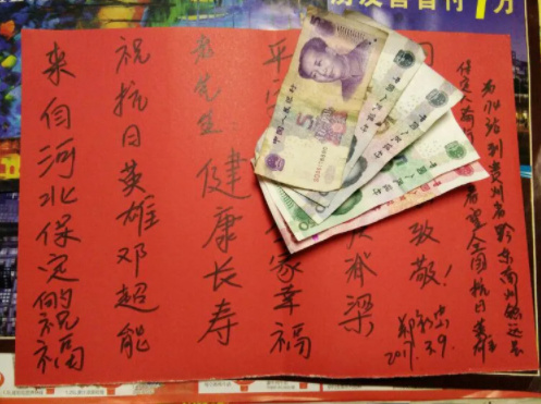 邓超能老爷爷今年102岁。为邓爷爷写下祝福奉上礼金,102+72=174,4不好听多加1块钱,给了邓爷爷175元致敬礼金。