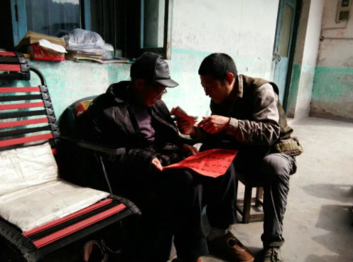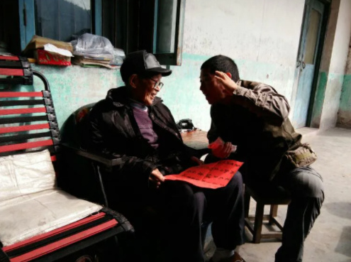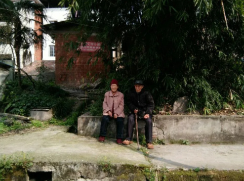 来到何爷爷家,他正与老伴儿在外晒太阳!