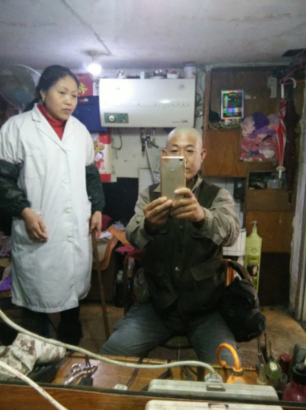 不能改变环境,只能自己适应,为方便打理,理个光头省事,拍张照片留作纪念,满头秀发呀!瞬间秃瓢了!