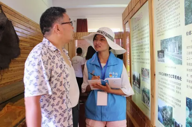 在红四军团指挥部参观,参观途中,邓芳对南宁职业技术学院团委徐熊波老师进行采访交流,了解到红四军指挥部具有的重要意义。在红四军指挥部广场--红一广场,栩栩如生的雕塑展现着红军将士保卫祖国的坚决和必胜的信念。