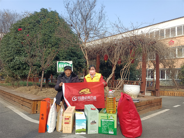 12月15日,宁然英带队,刘怀刚驾车到颍州区先后拜望了抗战老兵赵华中和志愿军老兵肖西川,送上北京铁血老兵公益的暖冬物资。今天参加的志愿者有大学生龚延婷、汪星、王晓雯,小学生刘琂、宁怿旖和社会志愿者储敏。
