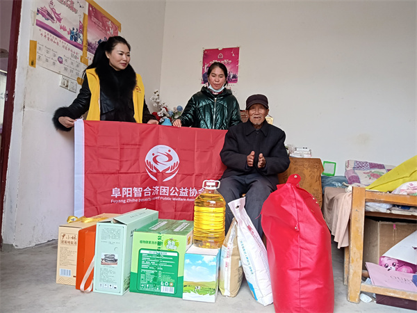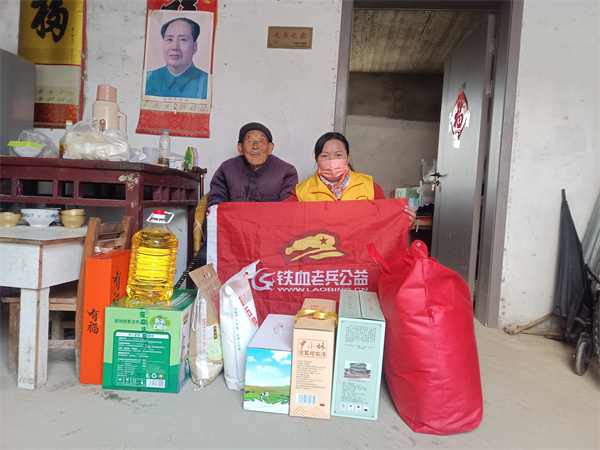 12月16日,吕梅梅带队,王艳驾车与志愿者崔路婷、王盼难一起到颍东新华街道吕寨村拜望百岁抗战老兵吕月来,送上北京铁血老兵公益的暖冬慰问物资。