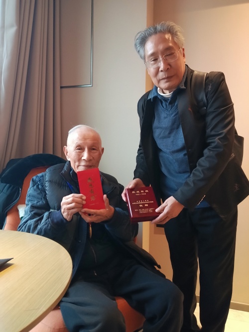 傅昨非向三位老兵介绍,按照省市 “书香十进”(机关、工厂、社区、学校等)工作部署,作为抗战老兵后代,他们有责任、有义务在抗战胜利八十周年这一特殊年份,以武汉会战历史为核心,在武汉试点开展 “讲好武汉会战中的故事” 主题活动,以此作为献给广大武汉民众的抗战胜利八十周年纪念礼。“我们希望通过讲述抗战老兵的亲身战斗经历,结合历史文献与口述史料,让武汉会战的历史记忆与精神传承深入人心,激励广大民众铭记先烈事迹、珍惜来之不易的和平生活,进一步增强公众特别是青少年对抗战历史的认知与理解,弘扬爱国主义精神、凝聚民族力量。”
