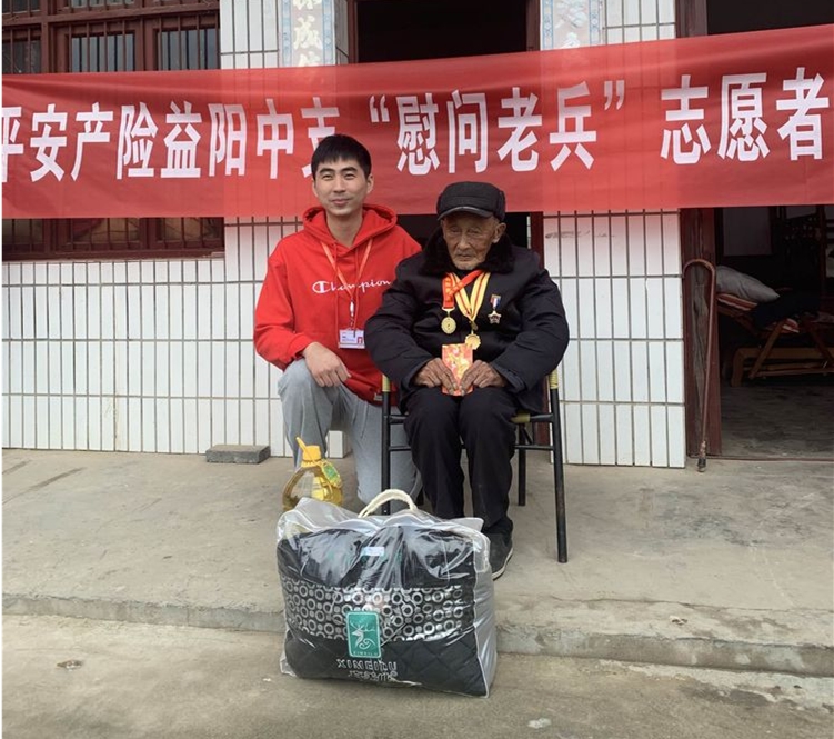 2019年11月21日上午湖南老兵之家益阳、桃江工作站志愿者:萍子姐、天空、周小叶一行三人,陪同平安产险益阳中支公司陈总等一行11人,带着爱心企业员工对民族英雄的敬意,前往桃江县桃花江镇近桃村、大栗港镇德茂园村、松木桥村。看望三位抗战老兵罗寅庭、熊学良、张应升爷爷! 送达平安产险益阳中支公司"慰问老兵"志愿者公益活动。赠送三位老兵每人500元慰问金及大米、食油、绒衣,并为张应升爷爷治病捐款 500元 ! 为老兵送上礼金礼品和精神上的双重抚慰。