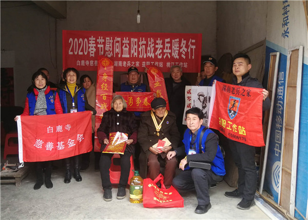 2020年1月9日、13日,湖南老兵之家益阳工作站携手白鹿寺慈善基金会开展的2020春节慰问益阳抗战老兵暧冬行公益活动进入第二站,益阳工作站志愿者虫二、一生平安、文倩、茉莉花、雪中飞舞、天空一行6人,带着全体志愿者对抗战老兵爷爷的关爱,前往安化县梅城、东坪地区看望慰问5位抗战老兵爷爷刘坤美、喻玉熙、罗后中、李礼中、刘又生,并送达白鹿寺慈善基金会的慰问金200元和食用油1桶;湖南老兵之家的慰问红包100元、挂历、对联、慰问信;健在的老兵他们绝大多数散居在偏僻农村,枪林弹雨劫后余生的老兵们,他们无惧死亡,只害怕孤独和被遗忘。这个冬季对这些高龄的老兵来说又是非常难熬的,而且这些老人正在快速凋谢,作为我们志愿者来说,只能用爱来温暖老兵最后的岁月。提前祝老兵爷爷春节快乐!幸福安康!感恩老兵,感谢关爱老兵爱心单位白鹿寺慈善基金会,感谢为湖南老兵之家慰问红包捐款的爱心单位,致敬一线志愿者!谢谢一生平安开爱心车往返!老兵有我们,老兵明天会更好!
