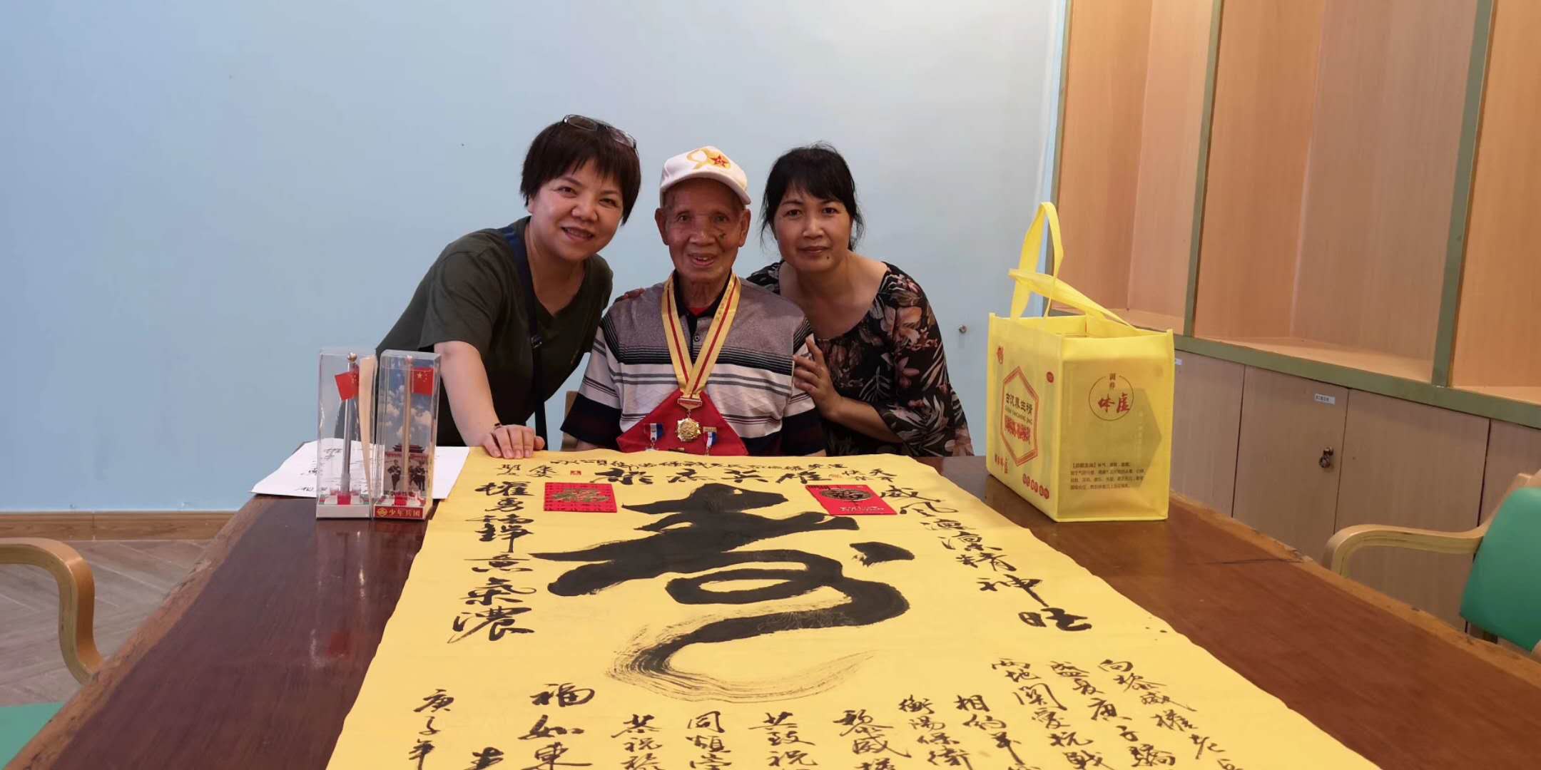 衡阳志愿者和广州志愿者一起,看望住在广州市的陆军突击总队(鸿翔部队)军委三阶翻译官张展猷老兵。(猷。读“尤”,谋划)