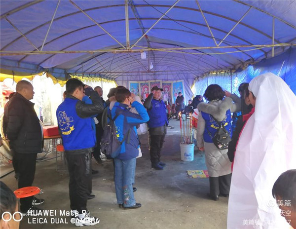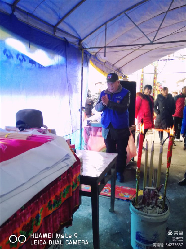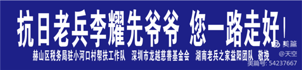 我们在铁棚灵堂门前挂好横幅挽联,为李爷爷遗体进行告别,由天空主持,在李爷爷遗像前默哀、三鞠躬、敬军礼、跪拜,绕灵柩一周,做最后的送别。2015年李爷爷光荣的获得了中共中央、国务院、中央军委颁发的抗日战争胜利70周年纪念章和一次性补助5000元。老兵的生日、三大传统节日都有志愿者和爱心单位上门慰问。使李爷爷的心灵受到了极大的精神安慰!李爷爷生于乱世,是一位历经沧桑的世纪老人,青年时期,正逢日本军国主义发动侵华战争,残暴的日军烧杀抢掠,无恶不作,有血性的中国人民坚决抗击日本的侵略。李爷爷为中国的抗日战争做出了不可磨灭的贡献。我们在这里悼念李爷爷,是想让更多的人了解李爷爷年青时为国家和民族所做出的贡献,值得我们晚辈尊敬!他是抗日的英雄,是民族的战神,是我们心中的丰碑!老兵不死,只是慢慢凋零!送达白鹿寺慈善基金会、深圳市龙越慈善基金会、湖南老兵之家、赫山税务局驻小河口村帮扶队曾科、益阳团队赠送的帛金、花圈、挽联、礼包。李爷爷去天堂路上您一路走好!谢谢曾科提供爱心免费车、蔡师付提供爱心车往返 ! 谢谢一线志愿者的热情参与!