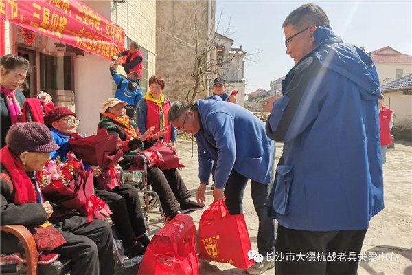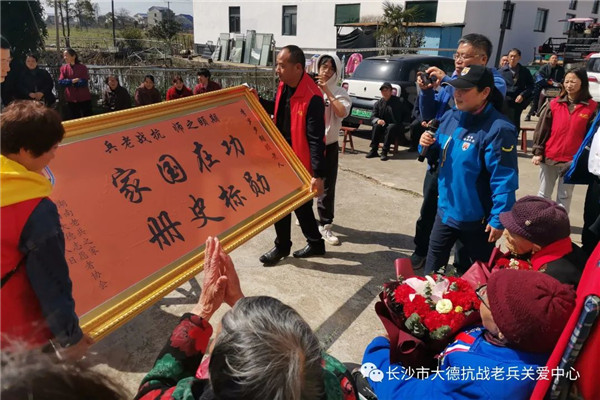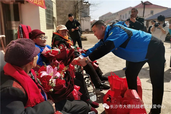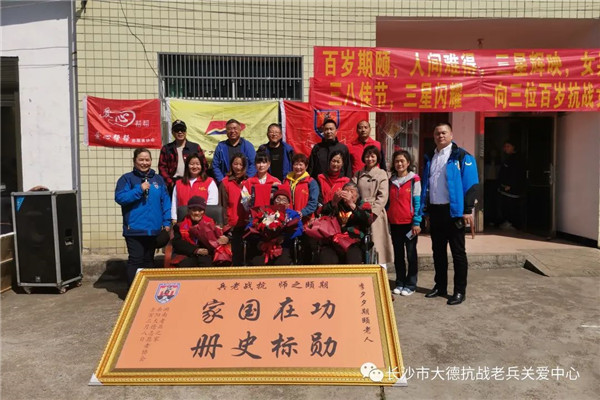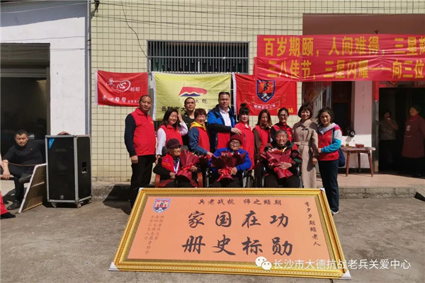 现场,志愿者为老人送上鲜花、礼品和慰问金,祝福老人健康长寿。值得一提的是,得知今天有三位百岁抗战女兵相聚,浙江温州志愿者管先生特意推掉去南昌出差的行程,转道长沙赶来汨罗,只为一睹百岁抗战女兵的风采。他说,抗战女兵虽然少有在抗战一线拿起武器参加战斗,但是她们积极参加抗日宣传、慰劳救护等工作,是抗战中不可缺少的力量。