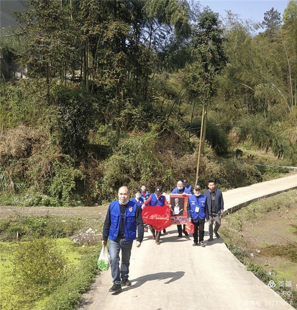 志愿者在大门门框上挂好横幅,推着坐轮椅的杨爷爷到屋前的阶基上,举行简朴的庆贺仪式。由理事周小叶主持,理事文小贤致祝寿词: