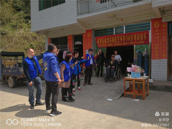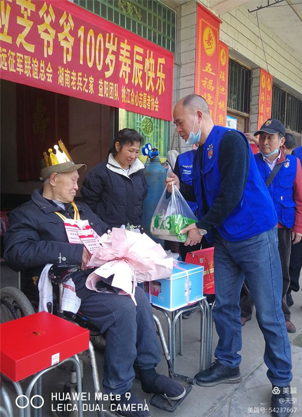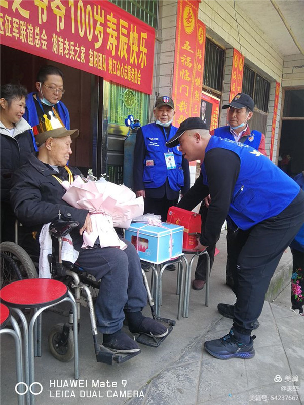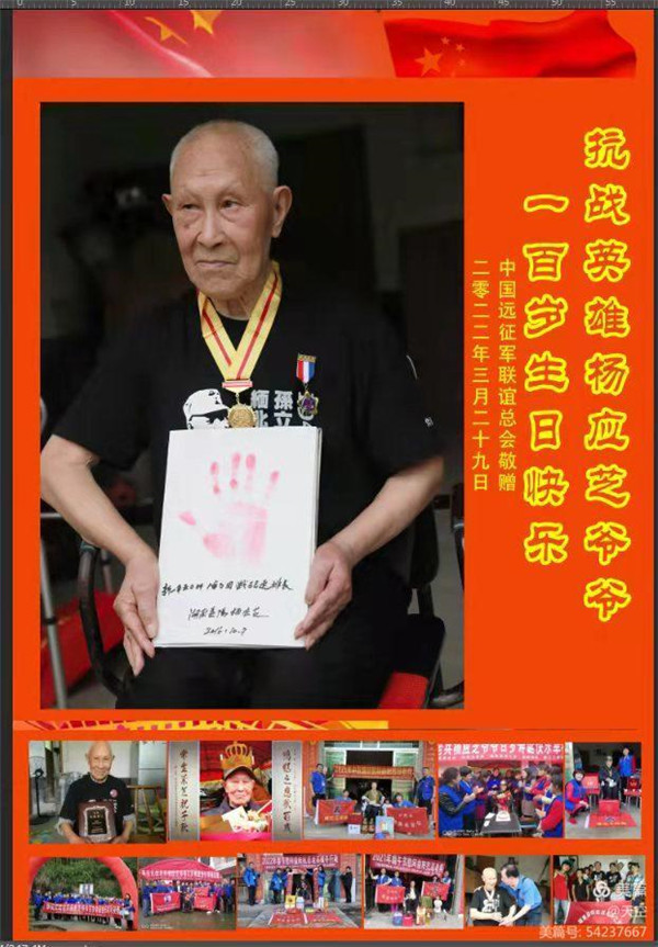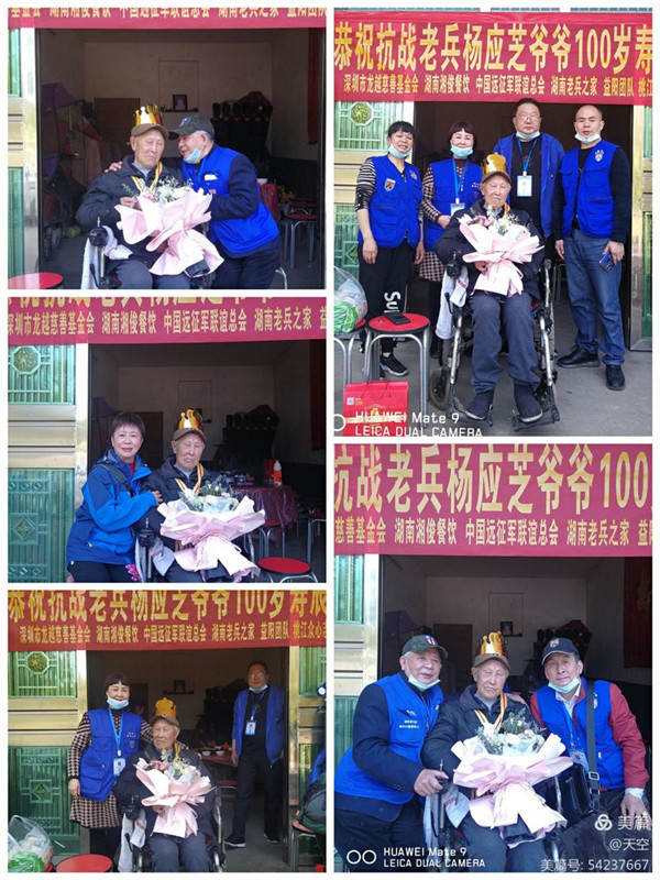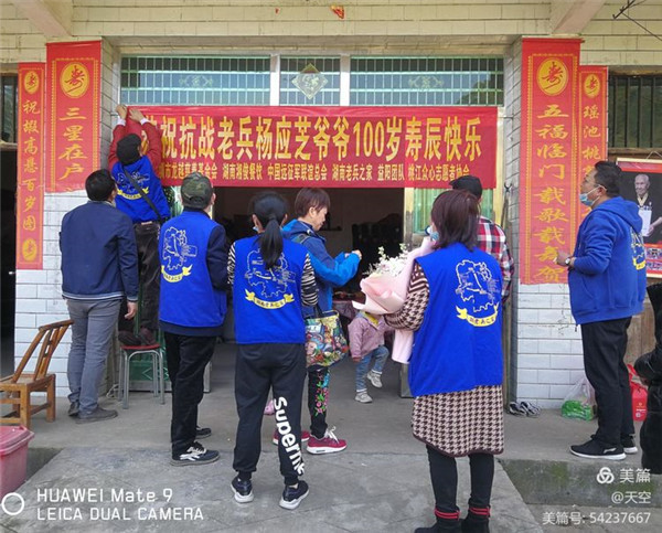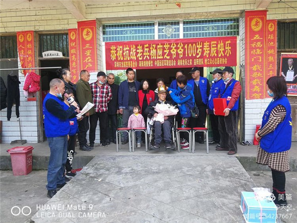 2022年3月29日上午,湖南老兵之家益阳团队和桃江县众心志愿者协会陈阳、文倩、格桑花、虫二、天空、钟乐、周小叶、凃杰风、文小贤一行9人,带着全体志愿者对抗战老英雄的深情祝福,前往桃江县大栗港镇德茂园村,为原国民革命军中国远征军战炮连抗战老兵杨应芝爷爷100岁寿诞举行祝寿活动。
