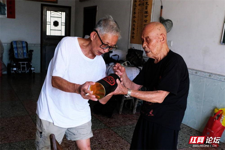 我把远征军联谊会赠送的围巾、抗日将领后人柏梅送的“黄埔胜利酒”“远征军魂酒”送给他,他来了兴致,滔滔不绝回忆起往事。末了不忘总结一句:感谢政府感谢党,多亏当年在机床厂和西湖农场吃得饱,要是在贫瘠的永安老家,恐怕早就饿死啦!