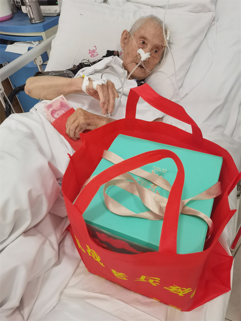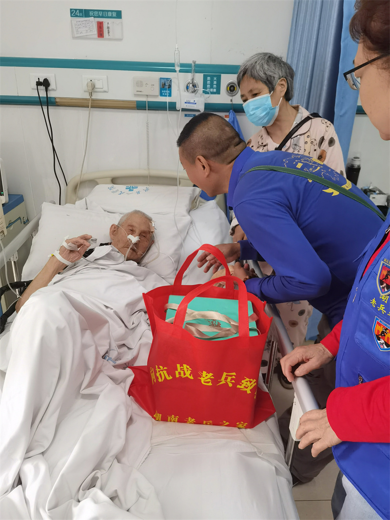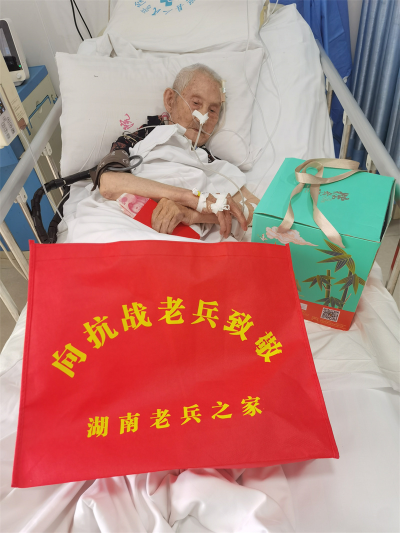 听说永兴县百岁抗战老兵马安汉爷爷大腿摔骨折住院了,郴州志愿者端午节慰问第一站就赶到医院看望马爷爷。志愿者带着湖南老兵之家提供的粽子、300元慰问金马和端午节大礼包去探望,爷爷收到粽子和红包,看到志愿者来看他很高兴,精神好多了。我们也受志愿者李湘鄂的委托,给老兵200元慰问金,祝马爷爷早日康复出院。