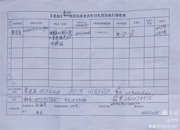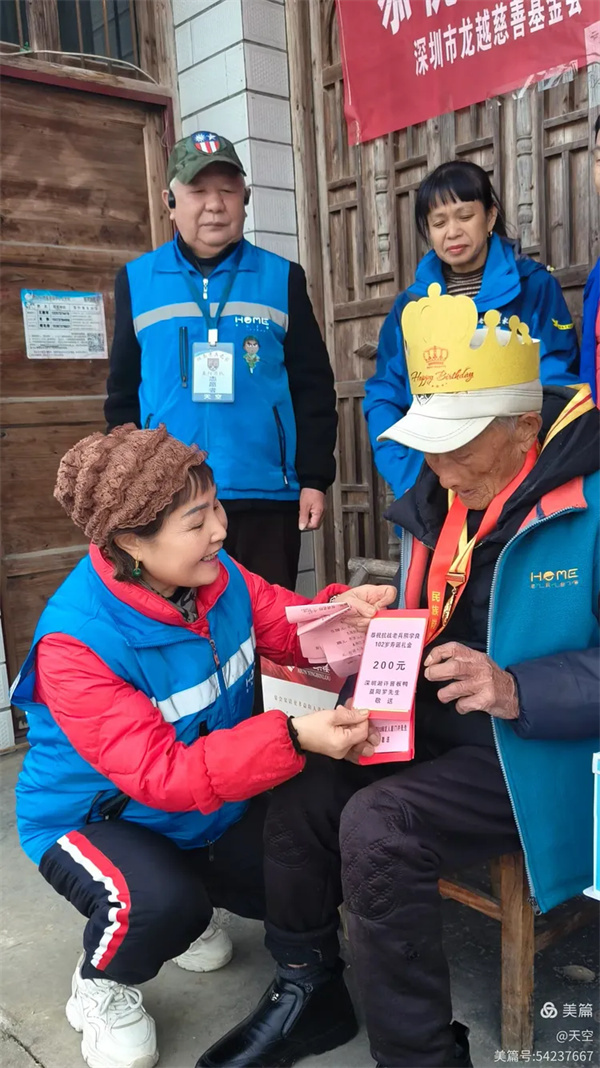 △深圳市龙越慈善基金会敬送生日礼金红包1000元,有请志愿者符节代送。