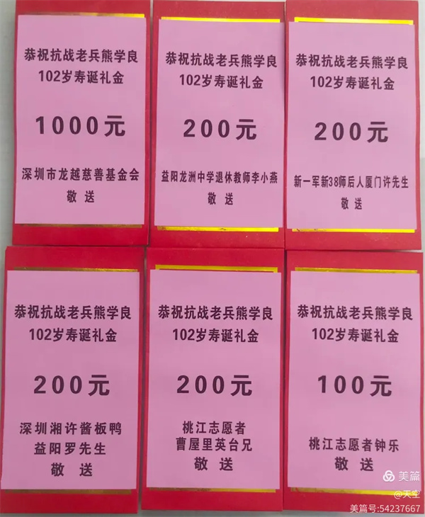 △新一军新38师后人厦门许先生敬送生日礼金红包200元,有请志愿者虫二代送。