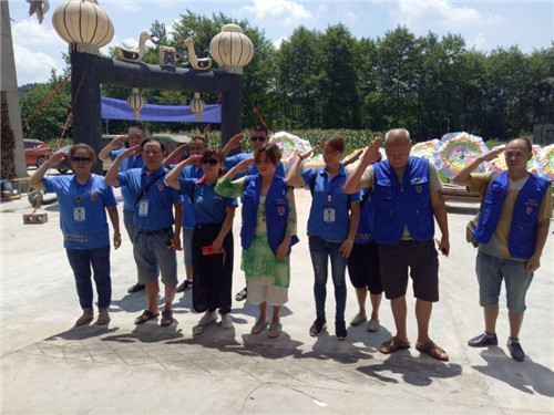 2018年7月26日,天气炎热,湖南老兵之家益阳团队郭总、天空、阿樱、龚萍、柔情、诗诗、曾续军、罗义兵夫妇与桃江工作站文小贤、周小叶、卢嗲、曾丽一行13人, 冒着酷暑怀着无比沉痛的心情前往桃江县三堂街镇白竹洲村悼念、跪送原国民革命军新一军新38师直属工兵营1连1排抗战老兵雷句华爷爷最后一程!