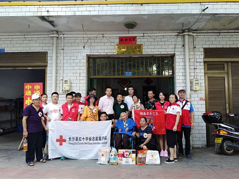 9月3日是抗战胜利纪念日,长沙县红十字会志愿服务队分别走访了居住在长沙县的19名抗战老兵,给他们送温暖。