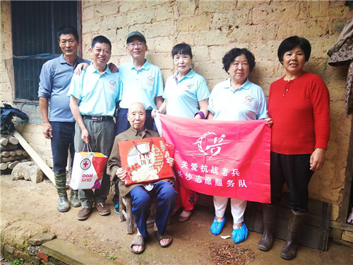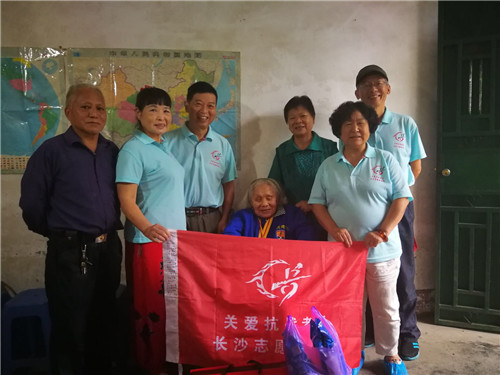 2018年9月23日是秋分, 风雨交加, 我与燕归来、九九、海燕、洋葱如约前往罗华松、郑慧庄、粟翼航三位抗战老兵家里祝贺中秋佳节,把关爱基金慰问金和我们长沙志愿服务队以及天心区红十字会服务队、朵爱食品公司的节日礼物送达老兵。